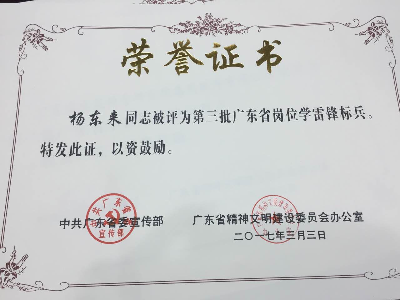 “崗位學雷鋒標兵”,楊東來當之無愧!